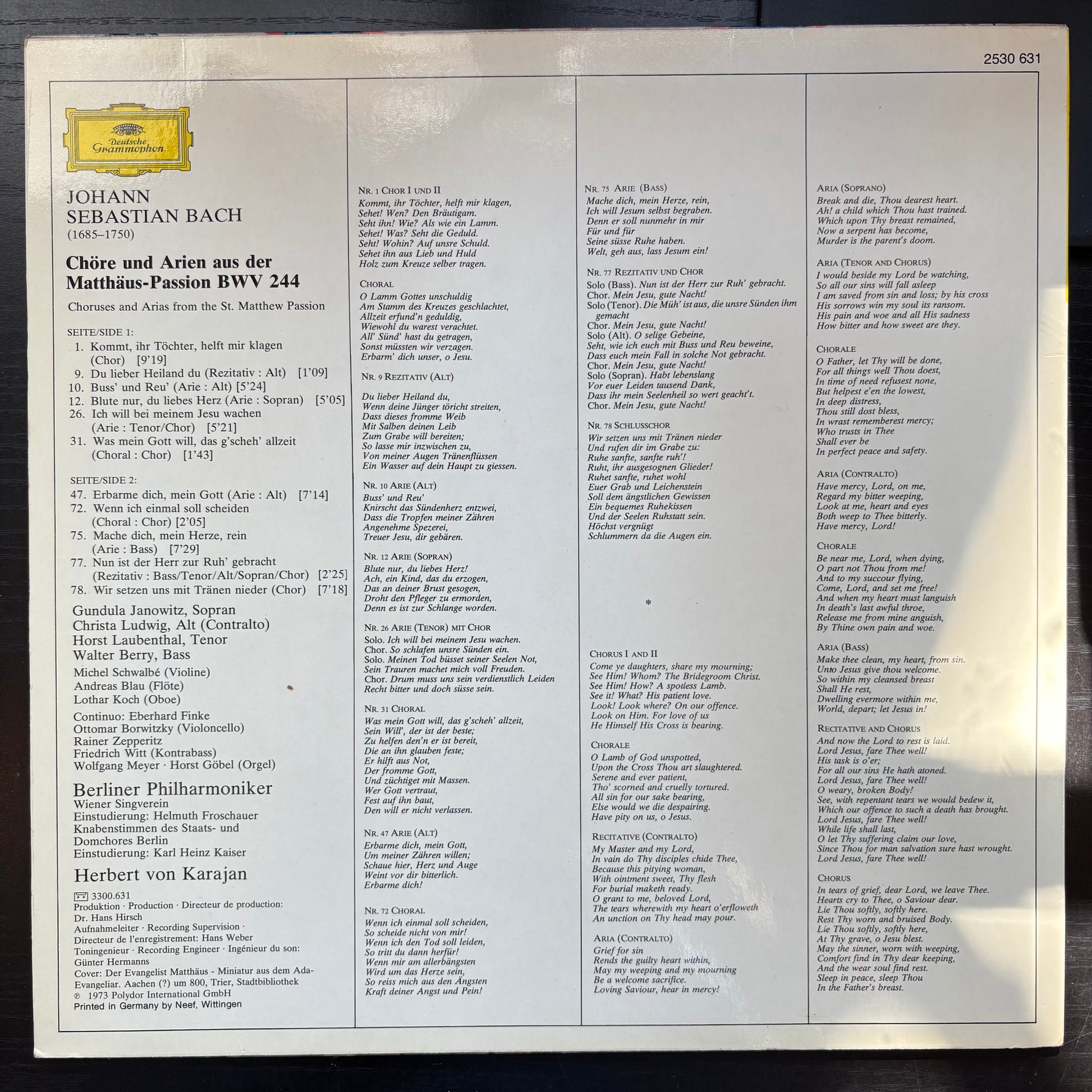 Johann Sebastian Bach / Herbert Von Karajan, "Choruses and Arias from the St. Matthew Passion" [VG+ Used]